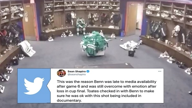 One man sat alone in the locker room after game six of the Stanley Cup Finals. The Dallas Stars had just been defeated. The series, over. The most wild season in recent memory, finished. The Stars were right there at the top of the mountain only to be shown an exit sign. Empty handed. That one man was the last person to remove his uniform, the last man to leave the room. That man was Jamie Benn. The captain of the Dallas Stars. Jamie Benn.