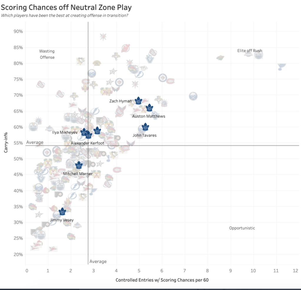 There have been many positives for the first placed Maple Leafs this year, but Zach Hyman’s growth as a player has been one of the biggest. If you’ve been paying attention, you won’t be too surprised by how good Hyman has become. He scored 21 times in just 54 games last year and scored the same amount in 71 games in 18/19. Hyman has always been an absolute menace when retrieving pucks and cycling down low,