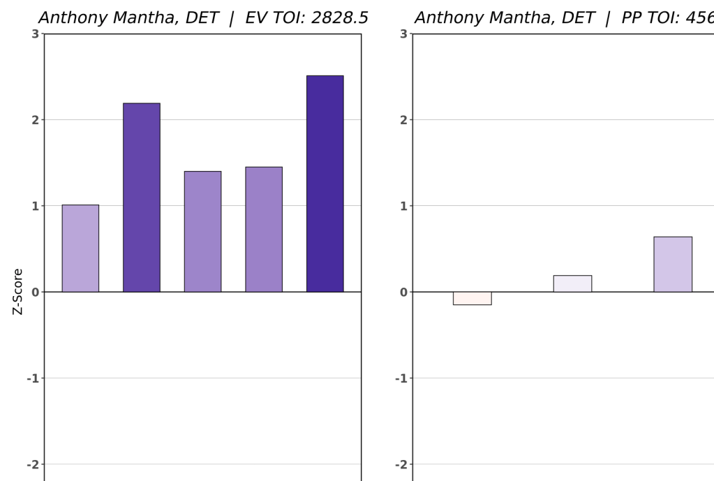Another guy having a less than a stellar year this year, but he’s just 26 years old and had been getting better every year before this season. The winger is a big gym with a wicked shot. Much like Palmieri, he’s more of a finisher than a creator, but the Leafs have two pretty good creators on their top two lines already anyway. He’s also much stronger defensively than most reputable goal scorers; his Even-Strength Defense Goals Above Average last year was the best on the Wings among forward by a large margin.