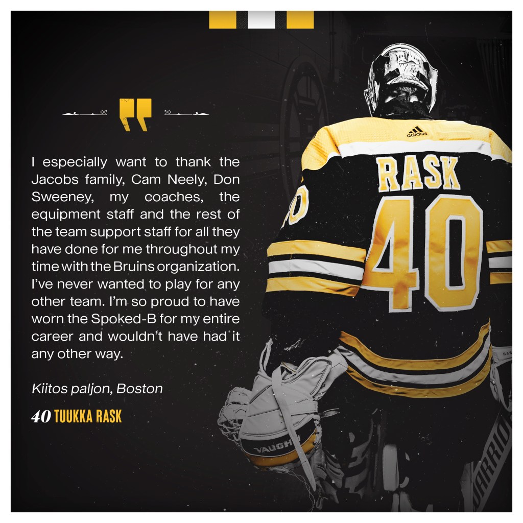 Tuukka Rask came back after a major surgery and gave it his all. When his game wasn’t up to the standard that he set for himself, he shut it down and made the difficult decision to hang them up. He leaves behind a legacy of greatness that the organization will be hard pressed to duplicate. Tuukka Rask didn’t get to leave the NHL on his own terms and he left games on the table. For that I’m sorry and I wish it didn’t end this way, but to be honest that’s me being selfish and wanting to see him back in the net flashing the leather and squared up to shooters. For Rask and his family, I’m glad that he’s able to spend the rest of his life doing whatever the hell he wants and is healthy and happy.