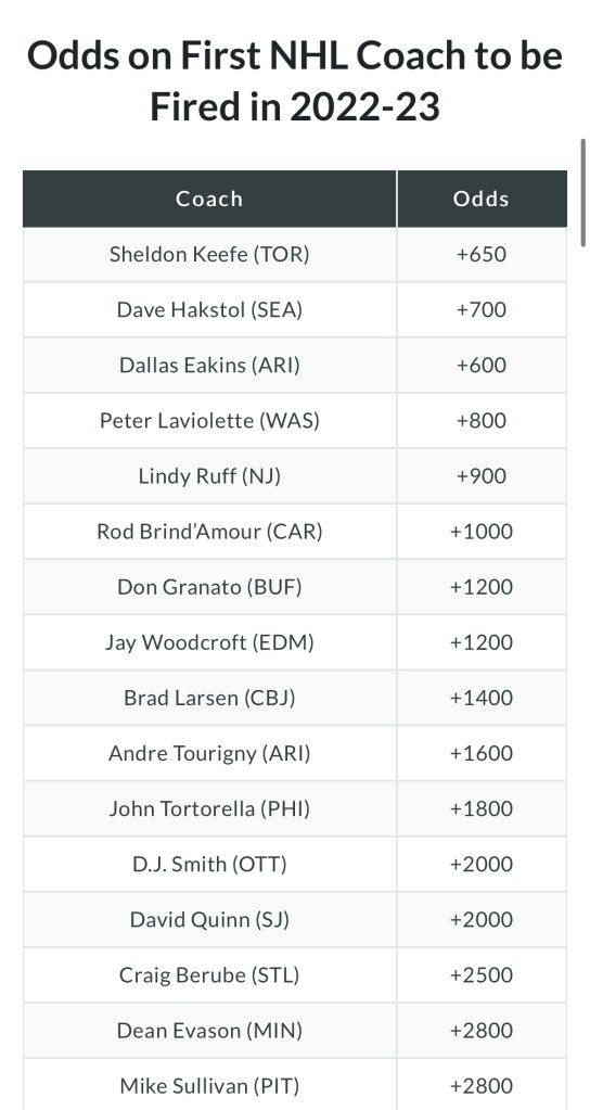 Fans are already calling for Brad Larsen to be fired in only his second season, and I’m not totally convinced he should have a job either, as he proved in the past he can’t run a successful powerplay and it sure is carrying over into this season. These odds were made in September, but let’s see if things changed throughout the season.