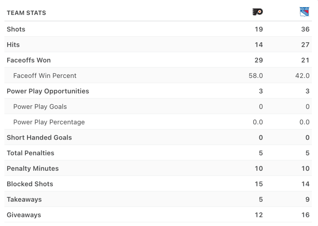 - Boy oh boy, this seemed like a game that the Rangers would get 100 shots on goal only to have the Flyers put in a squeaker as time expired – and that actually almost happened.