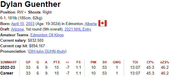 Similar to the Kraken, the Seattle Thunderbirds are having a tremendous season and have a stacked roster. The Thunderbirds are a favorite to win the WHL championship. Not only does this opportunity allow Guenther to develop his game, but he will also gain more experience in playing in high stakes, stressful situations and on a team with a winning culture which will be very helpful when the Coyotes are a wagon and competing for the Stanley Cup.