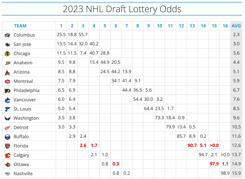It might be because my team is a wheelchair with pedals this year so they aren’t even sniffing playoffs, but it feels like the race to get this guy above at #1 is just as intense a race as the race for the cup. Below is the current chances at the #1 overall pick for the draft this summer via Tankathon.com.
