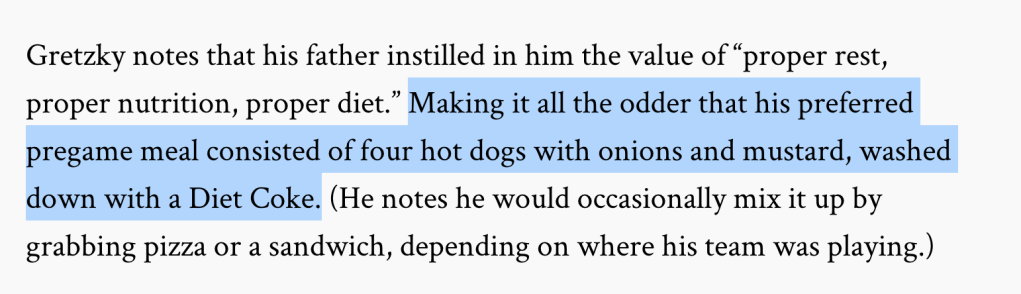 We all know about Phil Kessels love for the dog and recently Patty reminded us about how much of an animal Ovechkin is. Every once in a while we’re reminded about how different people can be. I would say a vast majority of NHLers are now on the MacKinnon diet and while that might work for them, it’s nice to know that there are players out there playing for the average Joe. And sometimes, just sometimes, they happen to be the best to ever do it.