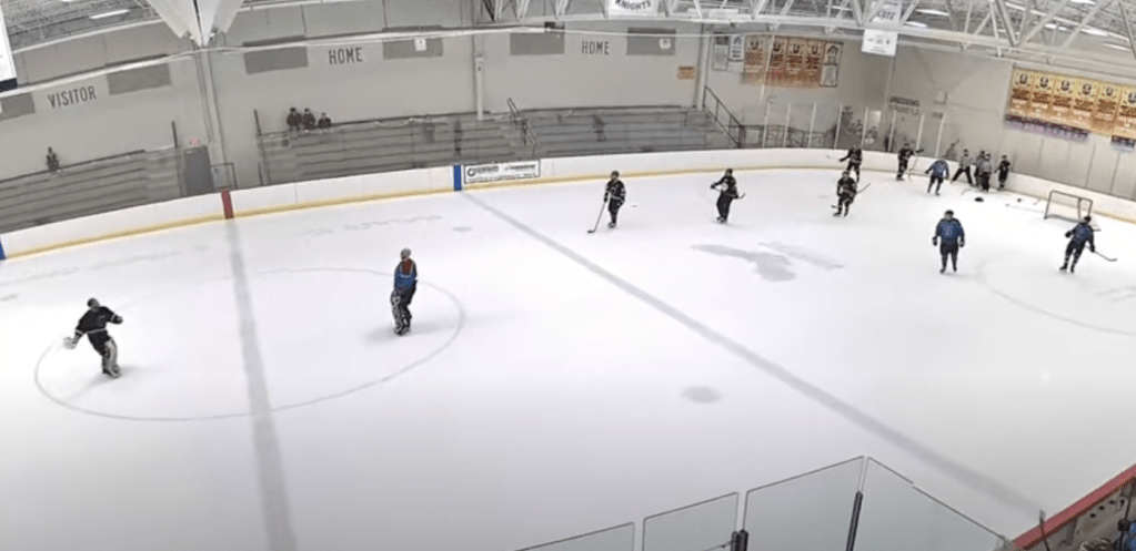 When I didn’t see this happen, I wondered how it would start. Again, is this a cruel prank? Was that the “fight”? But then we saw the goalie in blue go full hardo and skate down the ice. If you’re the other goalie you can’t turn this down – you can’t not accept a challenge to participate in one of the best things to happen in all sports. They had quite the spirited bout as they went toe to toe at center ice in front of a raucous crowd of 3 people but I wanted to give this guy a shoutout.