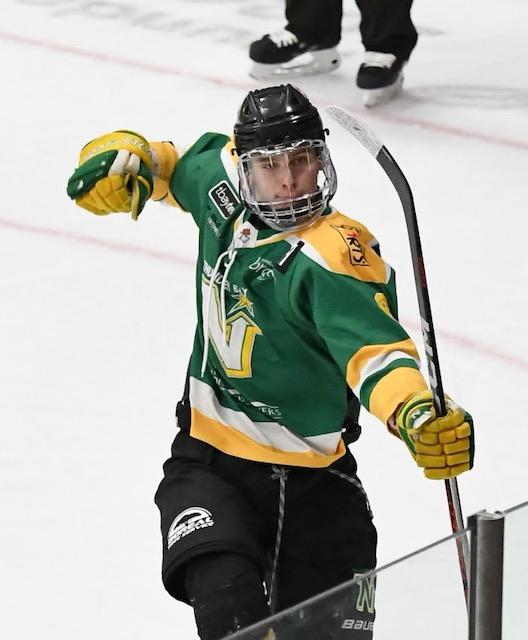 That hard work began paying off in particular in last season’s playoffs when he saw increased ice time. The North Stars were behind in the semi-finals three games-to one against the Dryden GM Ice Dogs. The North Stars had their backs against the proverbial wall. Paddington, who had six goals and 11 assists in the playoffs, and his team came back in the series and won Game Seven in double-OT to advance to the championship. Unfortunately, they could not bring home the Bill Salonen Cup in the championship series after losing to the Kam River Fighting Walleye.