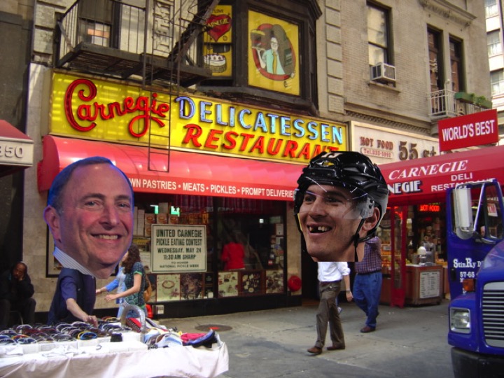 Guess who eats together, at the Carnegie Deli?
