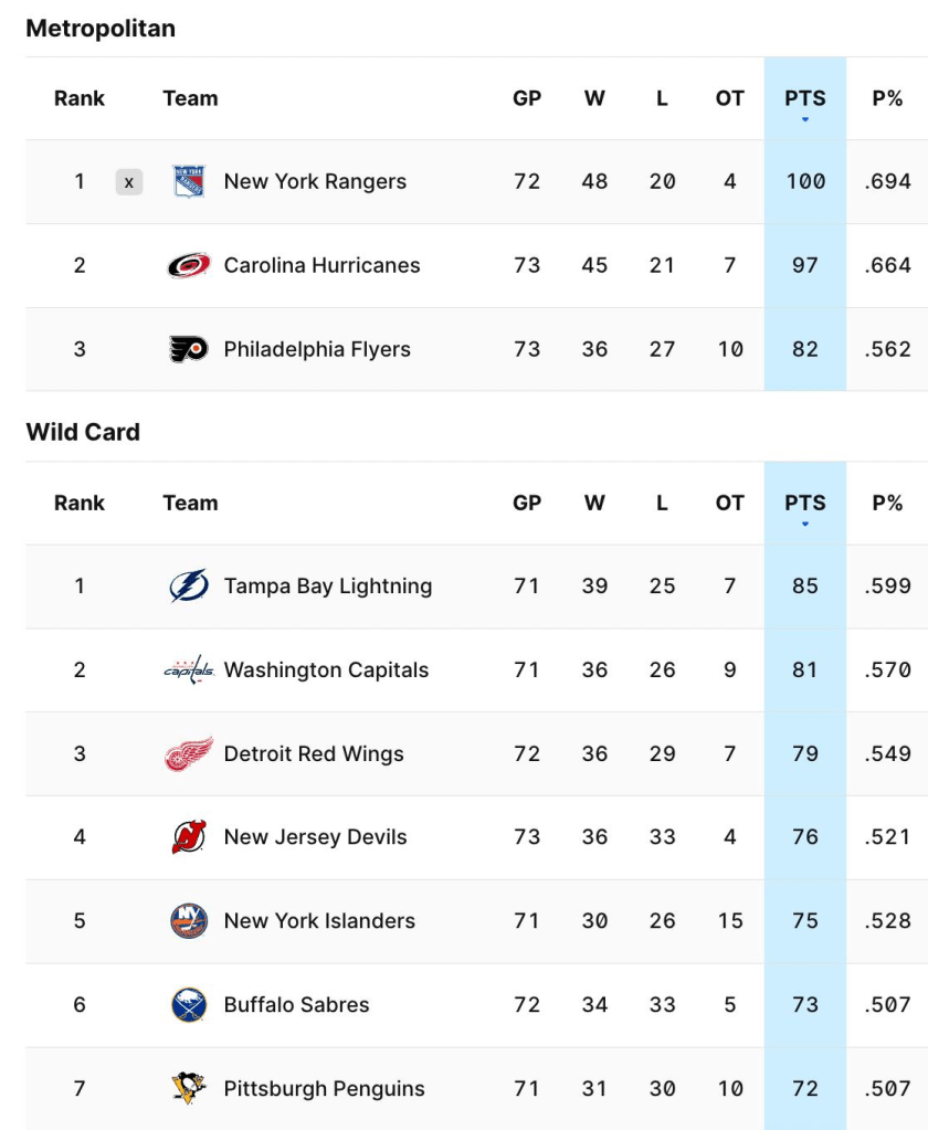 By securing the win it allows the Caps to remain in the second wild-card playoff position and increases their lead over the Red Wings to 2 points while also having a game in hand.