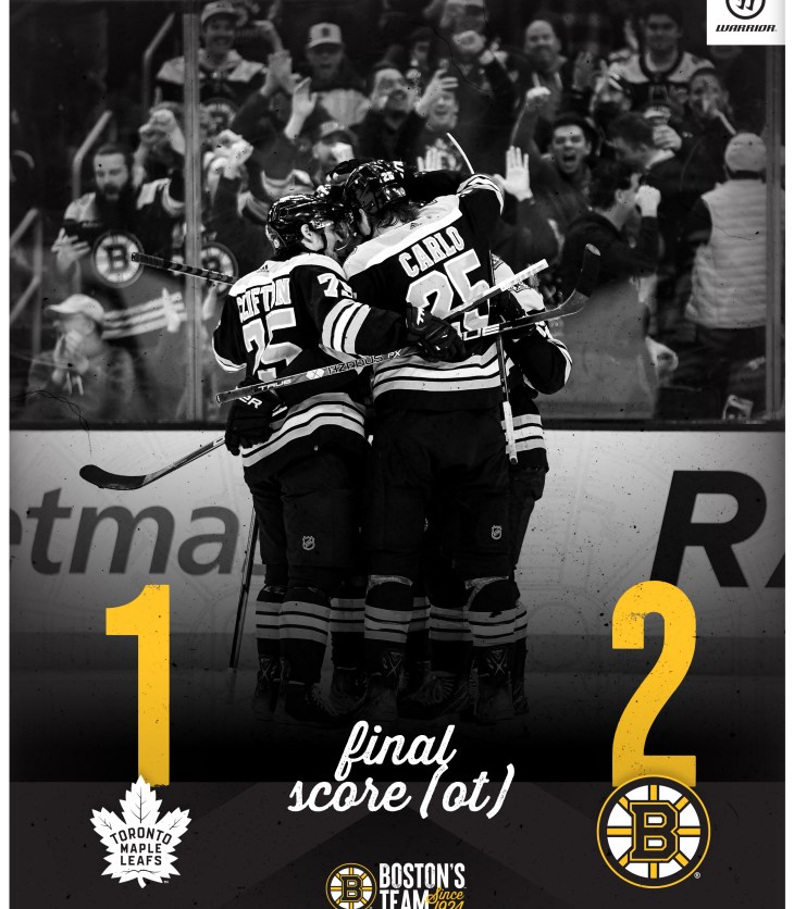 The Bruins continue to chase history with an OT win over Toronto. Pastrnak with 57G and Swayman earns his 22nd win