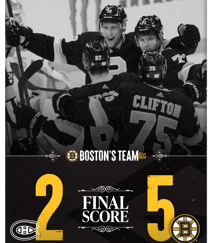 Your Boston Bruins welcome old friends the Montreal Canadiens to the TD Garden and then dominate them 5-2 behind a pair of Charlies.