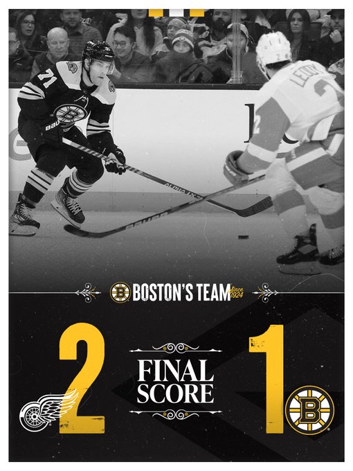 Bruins drop one at home to Detroit. B’s can’t solve Nedeljkovic as they outshoot DET by more than a 2:1 margin.