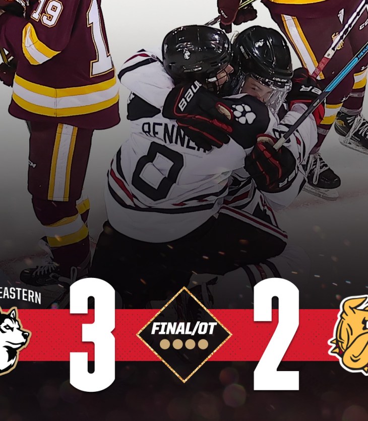 The NU Women’s Hockey team gets the W in OT to send themselves to the National Championship game on Saturday. #HowlinHuskies