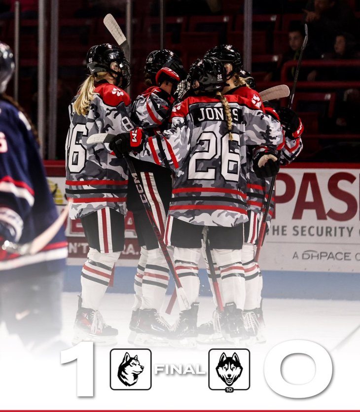 Northeastern completes the weekend sweep (and 2 shoutouts) of UConn with a 1-0 dub at Historic Matthews Arena. Homecoming weekend, Military Appreciation Night and a win over a ranked opponent.