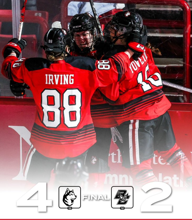 The Northeastern Huskies dominate the Boston College Eagles in the opening matchup of the Beanpot 4-2 at Historic Matthews Arena. Next week they face Boston University in the championship final.